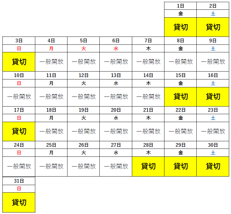 ・貸切の状況は変更となる場合がございます。