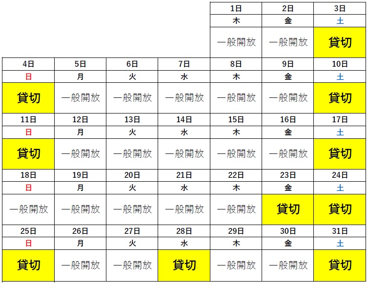 ・貸切の状況は変更となる場合がございます。
